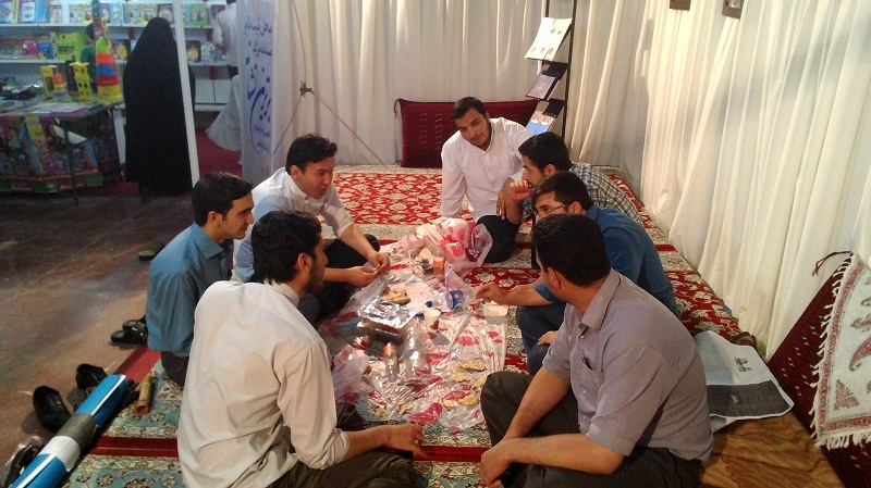 برگزاری نماز جماعت و افطار در محل غرفه